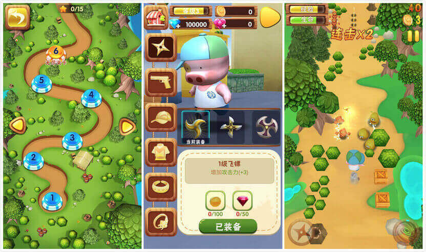 游戏分为“城市”、“沙漠”、“雪地”、“太空”、“森林”5个场景,每个场景5个关卡,主角通过扔飞镖或者开枪的方式打击前方怪物获得积分和金币并通关。