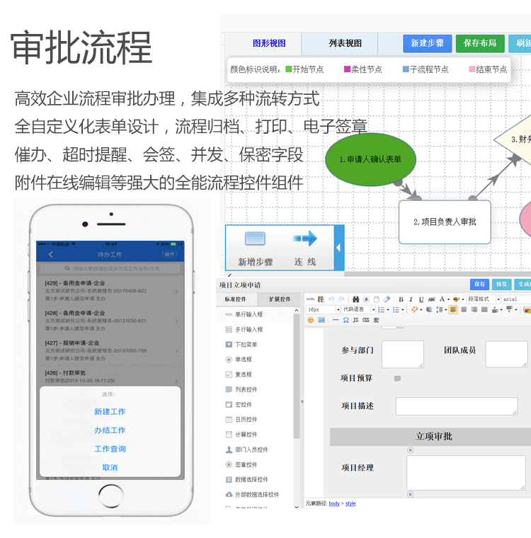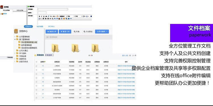 特 点:具有全界面全功能个性化定制/工作资料、流程按需自由规划/各层级各个体 组织化管理等特点