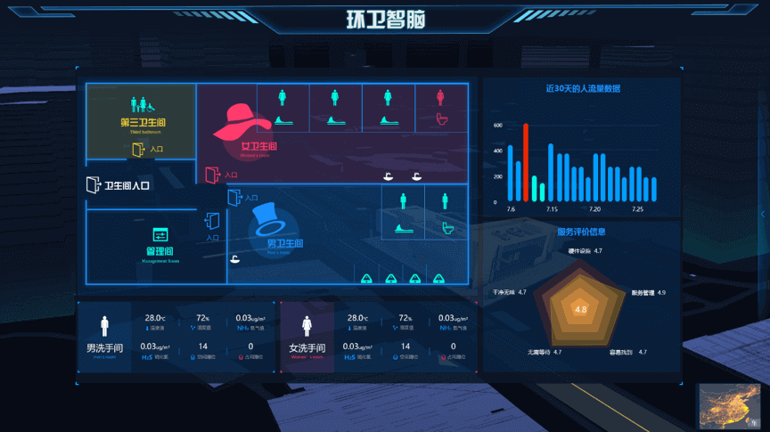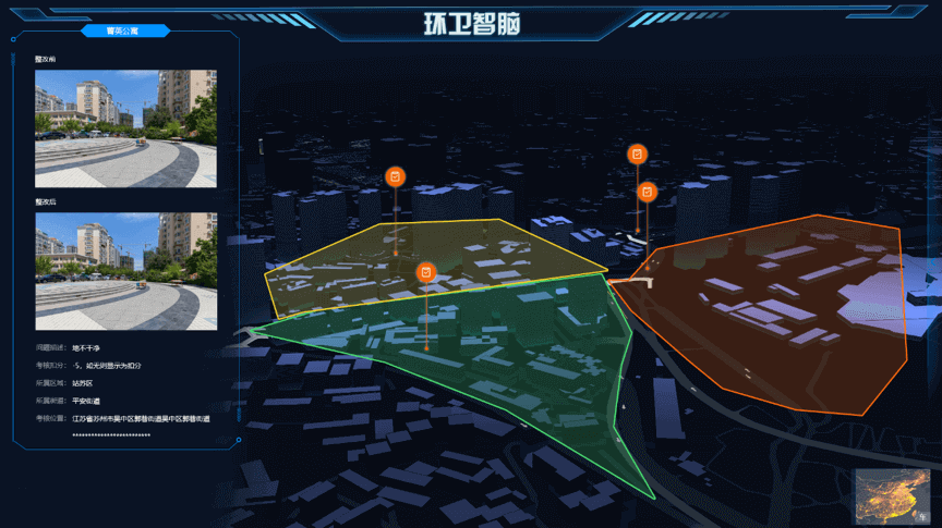 深入应用前沿技术,实现环卫道路保洁、垃圾收运、垃圾处置、垃圾分类、公厕管理等多业务的智能监管、 高效率质量督查、精细化层级考核、可视化数据分析研判,形成对环卫工作全流程的精细化、智能化、可视化及自动化管理。
